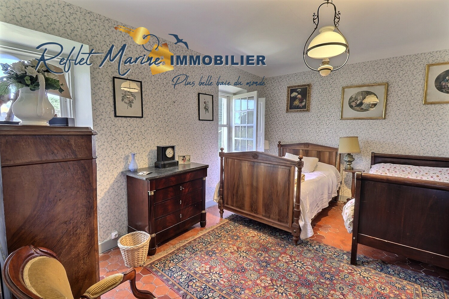 À l’étage, l’espace nuit se compose de 5 chambres spacieuses, dont une suite de 20 m², un bureau en alcôve de 10 m²,