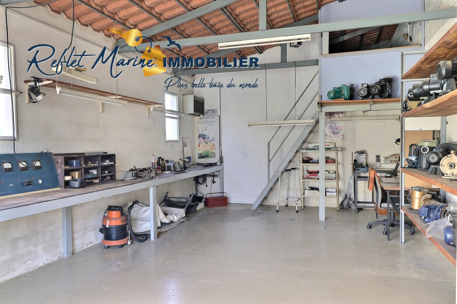 Actuellement agencée en type 3 de 60 m² avec atelier de 38 m2, elle dispose d’une entrée avec cuisine aménagée ouverte sur un séjour lumineux de 35 m², de deux chambres, ainsi que d’une salle de bains avec WC.