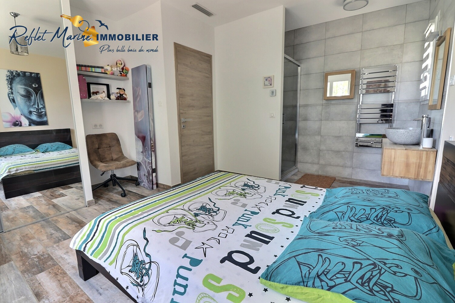 Côté nuit, un espace buanderie, un WC indépendant, une salle de bains avec baignoire et douche, une première chambre avec placard, une suite parentale, ainsi qu’une troisième chambre avec dressing attenant offrent à chacun son cocon de tranquillité.